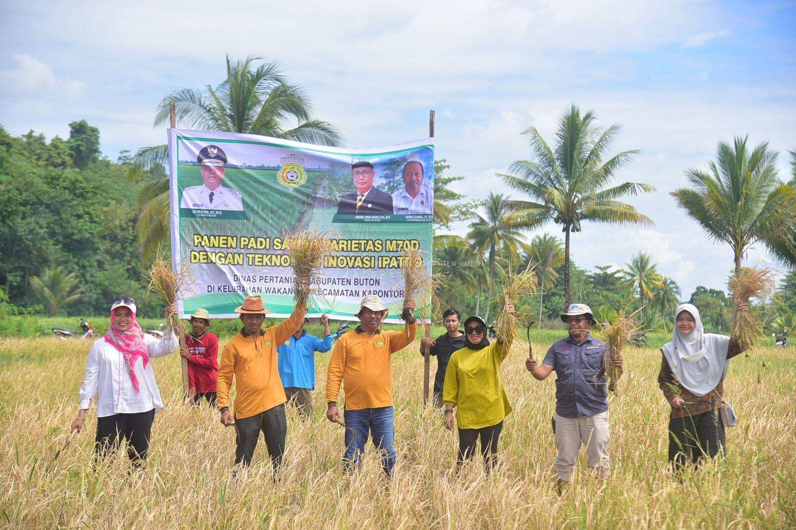 Kepala Dinas Pertanian Kabupaten Buton, Ma’mul Djamal, S.P., M.Si mengatakan bahwa Padi yang di panen merupakan padi jenis M 70 D adalah benih unggul yang berusia panen 70 hari.